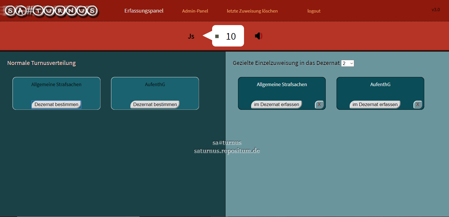 Das Front-End ist die Oberfläche, in der die Verfahrenserfassung / -zuweisung erfolgt.